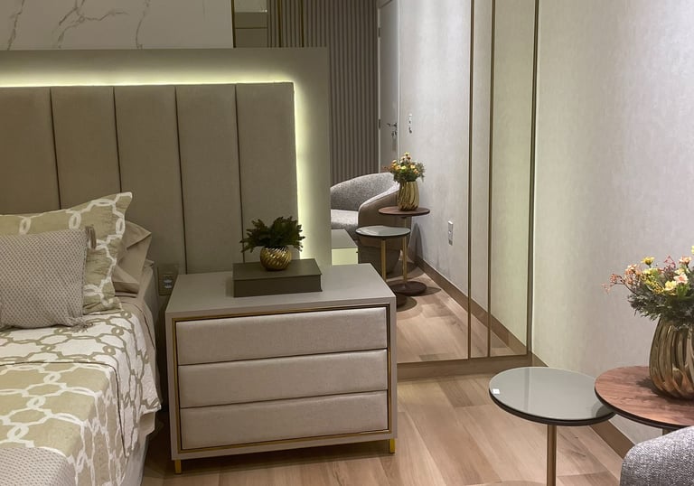 Crio projetos inovadores e inspiradores, explorando formas, cores e texturas. Cada conceito é pensado para contar uma história e despertar sensações, tornando seu ambiente único e memorável.